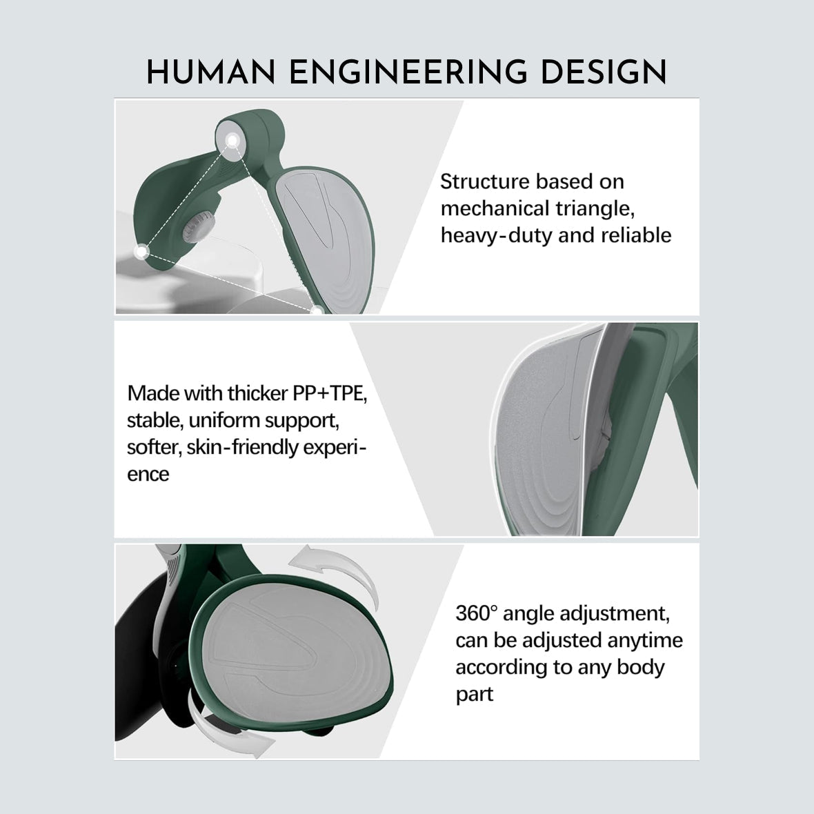 The skin-friendly silicone joint ensures smooth motion without pinching. Its triangle structure provides superior elasticity and durability—lightweight, portable, and built to last.
